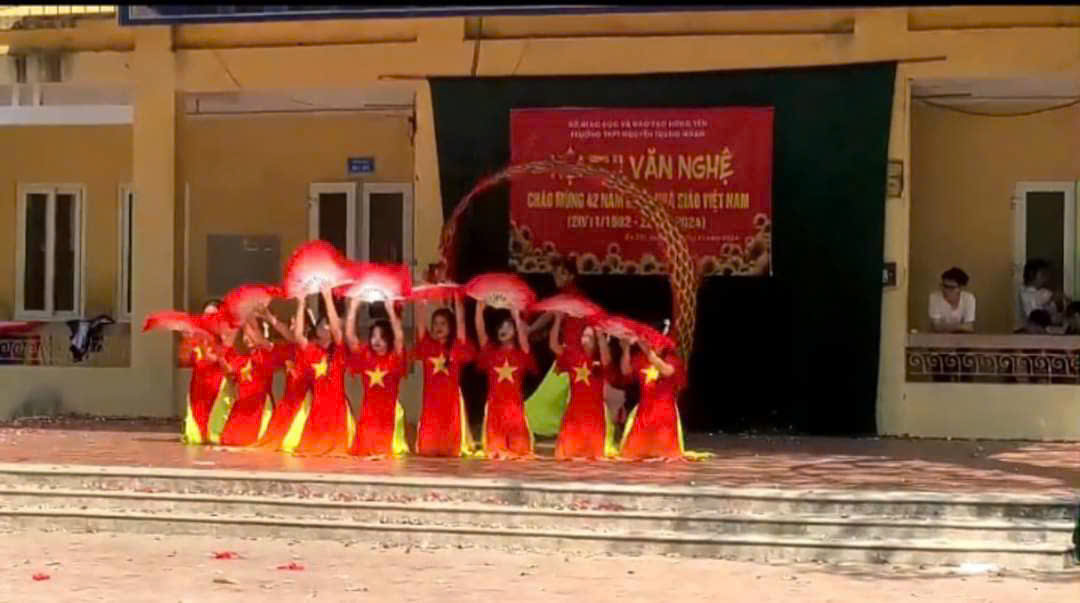 Tất cả các nữ sinh trường THPT Nguyễn Trung Ngạn mặc áo dài đầu tuần