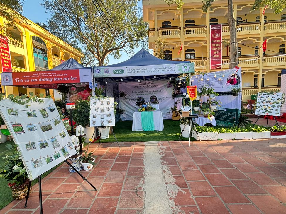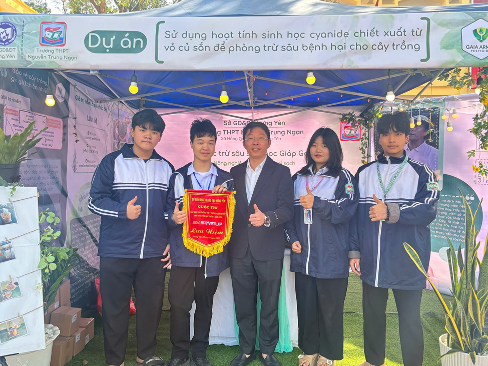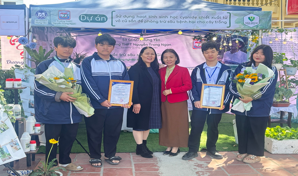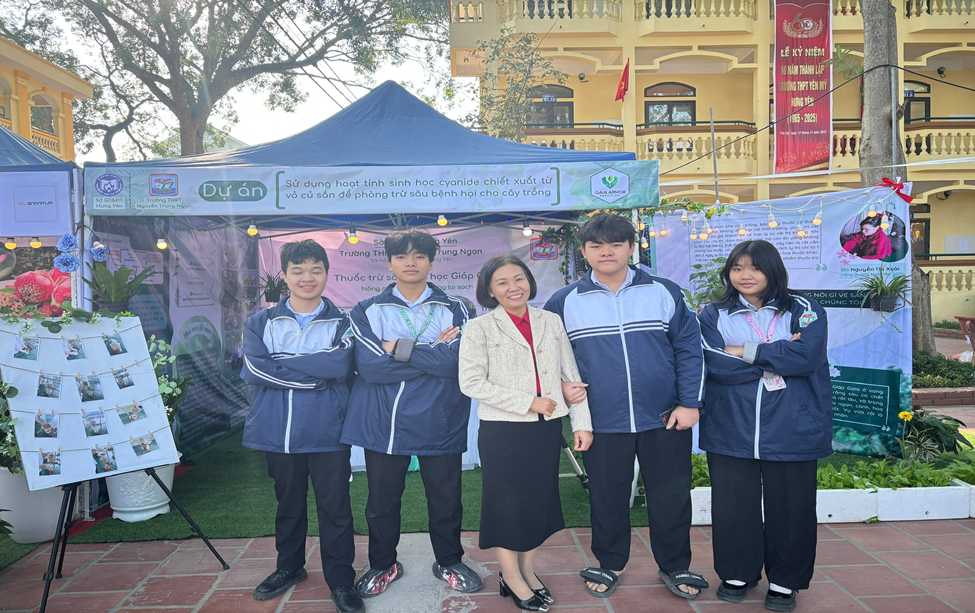 Trong khuôn khổ vòng chung kết đầy cạnh tranh, trường THPT Nguyễn Trung Ngạn đã ghi dấu ấn đậm nét khi xuất sắc giành giải Nhì với dự án: “Sử dụng hoạt tính sinh học cyanide chiết xuất từ vỏ củ sắn để phòng trừ sâu bệnh hại cho cây trồng” và giải Gian hàng xuất sắc. Dự án được thực hiện bởi các em học sinh lớp 11A1: Phạm Hoàng Minh (nhóm trưởng), Nguyễn Trọng Đảm, Hoàng Trần Mai Hoa và Trương Minh Tiến, dưới sự hướng dẫn của cô Vũ Thị Hương Lan - Phó hiệu trưởng nhà trường. Dự án được Ban Giám khảo cuộc thi đánh giá cao về tính độc đáo, khả năng ứng dụng thực tiễn và tiềm năng phát triển. Với dự án “Sử dụng hoạt tính sinh học cyanide chiết xuất từ vỏ củ sắn để phòng trừ sâu bệnh hại cho cây trồng”, các em học sinh không chỉ tạo ra giải pháp sinh học thay thế hóa chất độc hại, mà còn tận dụng được nguồn nguyên liệu sẵn có từ sắn ở địa phương để sản xuất ra thuốc trừ sâu sinh học, an toàn với môi trường và người sử dụng. Từ đó, góp phần hạn chế việc lạm dụng thuốc hóa học trên cây trồng, đáp ứng nhu cầu thị trường hiện đang cần những sản phẩm sạch và an toàn. Đồng thời, góp phần tăng giá trị kinh tế, mở ra cơ hội thương mại hóa và ứng dụng rộng rãi trong sản xuất nông nghiệp, thúc đẩy phát triển nông nghiệp bền vững.