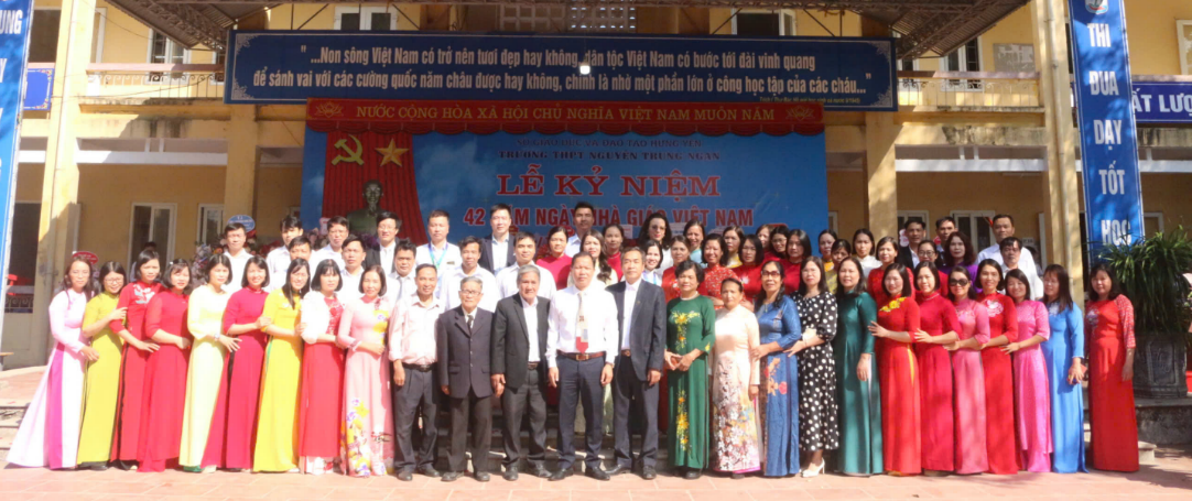 Ảnh 1. Tập thể CB,GV cùng các cựu giáo viên Nhà trường trong Lễ kỷ niệm 42 năm ngày Nhà giáo Việt Nam (20.11.2024).