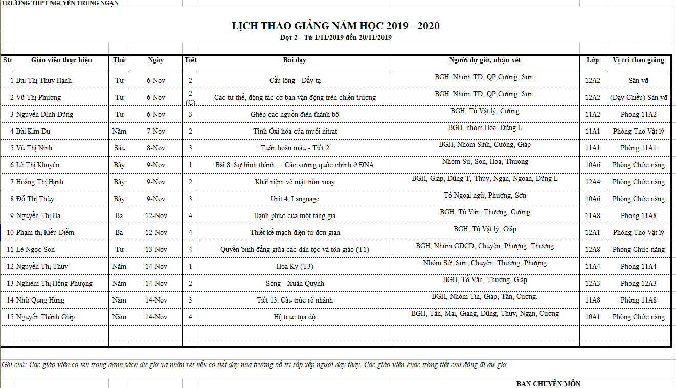 Thực hiện kế hoạch hoạt động chuyên môn năm học 2019 – 2020; hướng tới kỷ niệm Ngày nhà giáo Việt Nam 20/11/1982 – 20/11/2019, Trường THPT Nguyễn Trung Ngạn tổ chức thao giảng chào mừng ngày nhà giáo Việt Nam 20/11/2019.