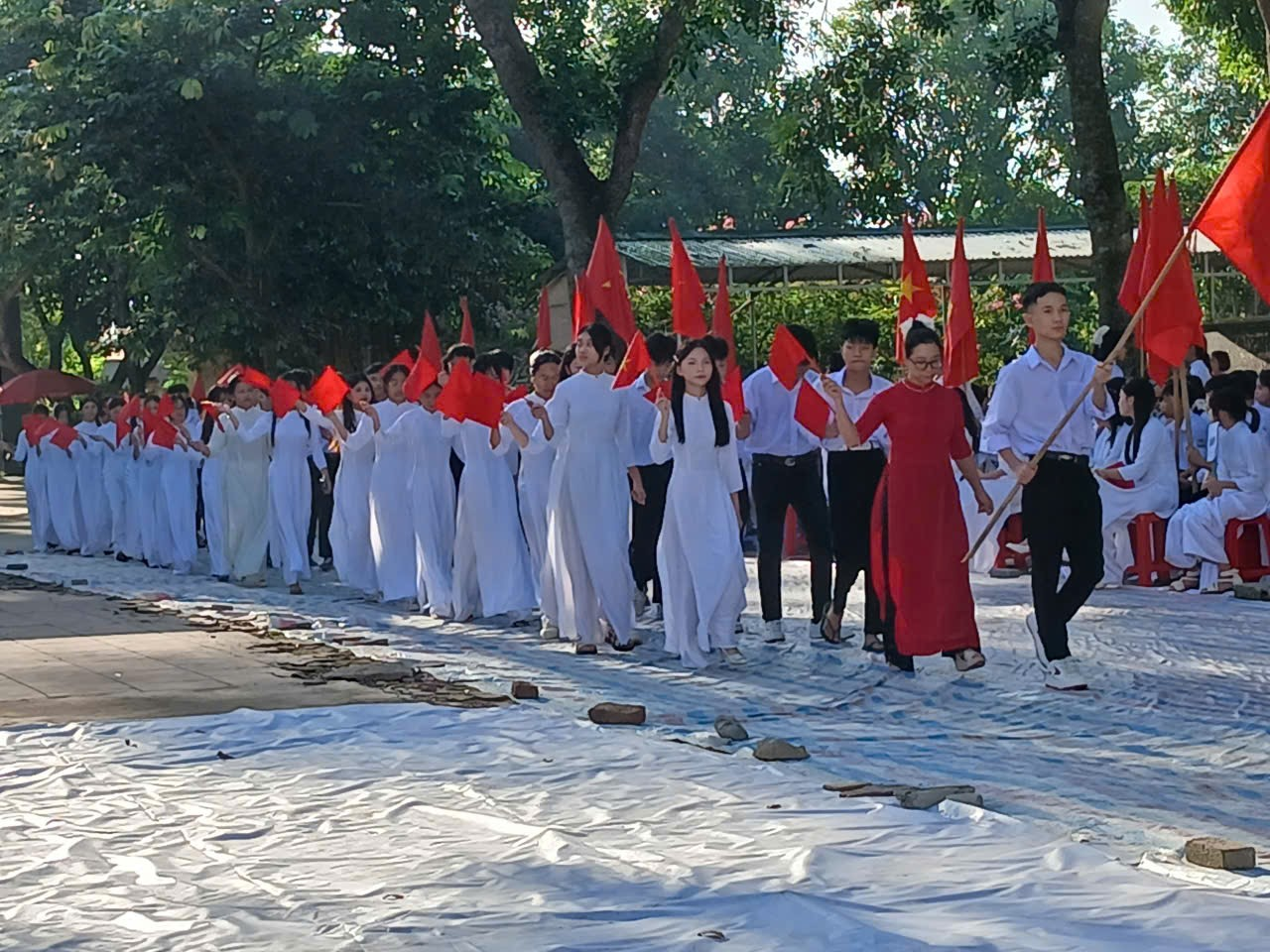 Cũng trong buổi lễ này, nhà trường đã tiến hành tôn vinh, biểu dương, khen thưởng các thầy cô và các em học sinh có thành tích cao trong kỳ thi tốt nghiệp và tuyển sinh đại học 2025, kỳ thi tuyển sinh vào lớp 10 năm học 2025-2026: cô Phan Thị Vân, thầy Nguyễn Đình Dũng, cô Nguyễn Thị Thùy Trang, thầy Lê Công Toán, thầy Lê Ngọc Sơn, cô Nguyễn Thị Thu Nguyệt; em Phạm Phương Nam lớp 12A1, em Nguyễn Thị Hồng Nhung lớp 12A4 (đạt điểm 10 môn Vật lí); em Phạm Việt Anh lớp 12A4 (đạt điểm 10 môn Tin học); em Nguyễn Văn Huy lớp 12A5, em Dương Thị Giang lớp 12A8 (đạt điểm 10 môn GDKT&PL); em Mai Khánh Lý lớp 12A7 (đạt điểm 10 môn Địa lý); em Nguyễn Thị Ngân lớp 12A5 (đạt 27,25 điểm khối C00), em Phạm Phương Nam lớp 12A1 (27điểm khối A01), em Nguyễn Thị Hồng Nhung lớp 12A4 (27điểm khối A01), và em Đỗ Thuý Liễu lớp 10A1 là thủ khoa kỳ thi tuyển sinh vào lớp 10 với tổng điểm các môn là 28 điểm.