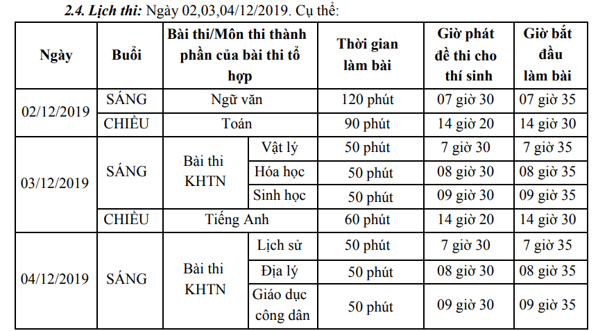 Lịch thi khảo sát chất lượng lớp 12 năm 2019