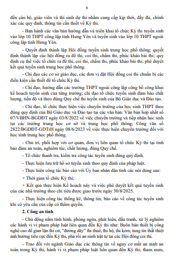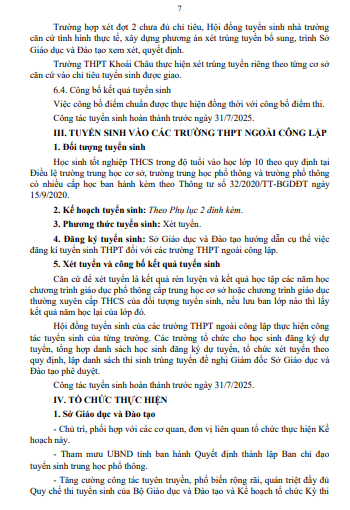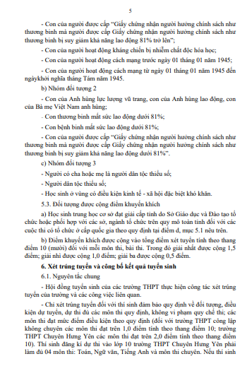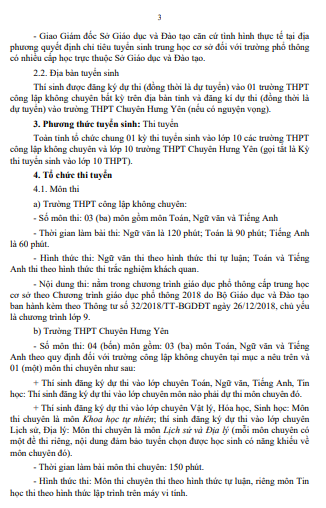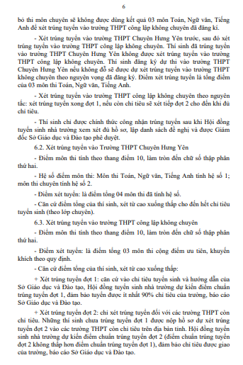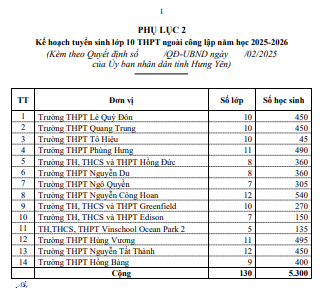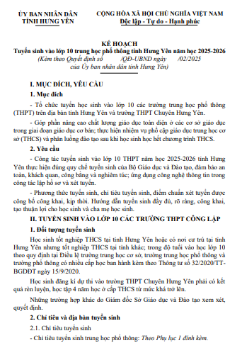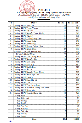 Quyết định Phê duyệt Kế hoạch tuyển sinh vào lớp 10 trung học phổ thông tỉnh Hưng Yên năm học 2025-2026(13/02/2025)