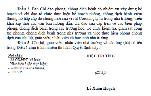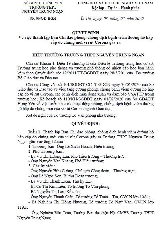 Quyết định thành lập ban chỉ đạo phòng chống dịch viêm đường hô hấp