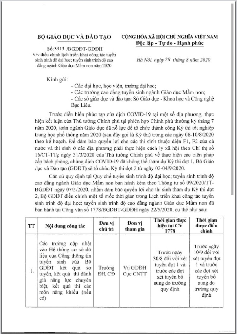 Thời gian thực hiện điều chỉnh nguyện vọng kì thi Tốt nghiệp - xét tuyển đại học năm 2020