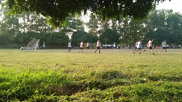 Trận thi đấu bóng đá giữa hai đội bóng 10A2 và 10A8 với sự cổ vũ nhiệt tình của cổ động viên