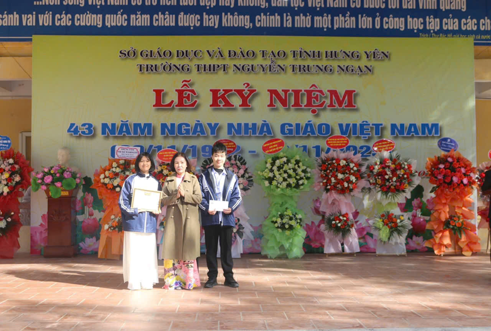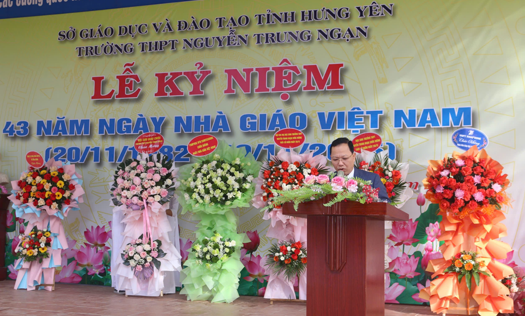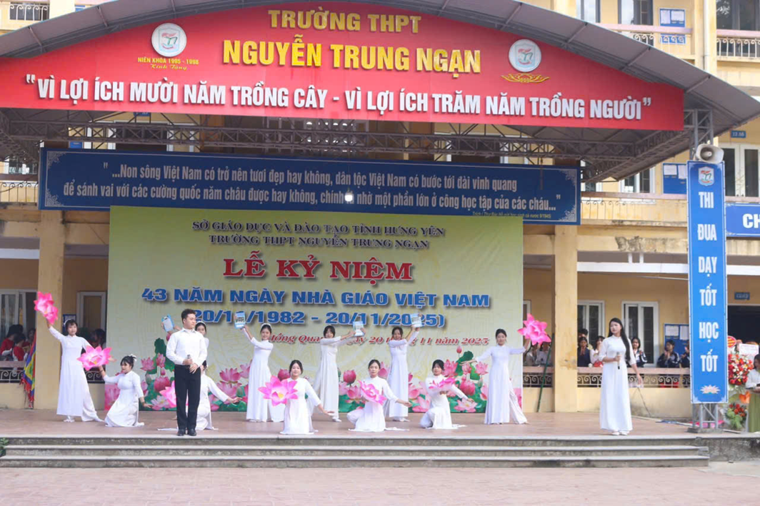 Trong không khí trang trọng và ấm áp, các đại biểu đã cùng thầy, trò nhà trường ôn lại truyền thống Ngày nhà giáo Việt Nam và những cống hiến, đóng góp của các thế hệ giáo chức cho sự phát triển mạnh mẽ của nhà trường. Với khát vọng góp nhụy cho cuộc đời, những nhà giáo chân chính với bề dày kinh nghiệm đã miệt mài đưa từng chuyến đò tri thức cập bến thành công. Các thầy cô đã lặng thầm dành cho nhà trường tất cả thời gian và tuổi trẻ lập nên nhiều kỳ tích vẻ vang cho sự nghiệp giáo dục và đào tạo nên nguồn nhân lực có chất lượng cho xã hội. Những thành tích ấy sẽ tiếp tục là động lực để tập thể hội đồng sư phạm nhà trường vượt lên khó khăn thách thức, hoàn thành tốt nhiệm vụ và mục tiêu đổi mới, củng cố, nâng cao chất lượng giáo dục, để trường THPT Nguyễn Trung Ngạn luôn là ngôi trường lý tưởng như sự kỳ vọng của lãnh đạo tỉnh, của ngành giáo dục, của phụ huynh và bao thế hệ học trò.