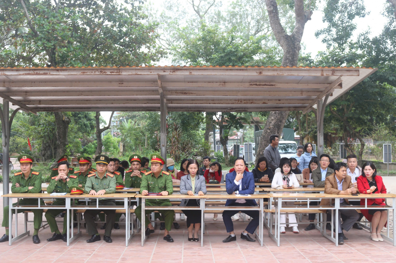 Tham dự buổi tuyên truyền, về phía công an xã Hồng Quang có đồng chí trung tá Nguyễn Văn Thành – Trưởng công an xã, đồng chí trung tá Nguyễn Văn Bắc – Phó trưởng công an xã, đồng chí trung tá Nguyễn Danh Tuyên – Phó trưởng công an xã, đại uý Vũ Văn Tùng – Phó trưởng công an xã và các đồng chí cán bộ các tổ công tác công an xã Hồng Quang. Về phía nhà trường có thầy Phạm Anh Tuấn - Bí thư chi bộ, hiệu trưởng nhà trường, các thầy cô trong ban giám hiệu, cán bộ giáo viên, nhân viên và hơn 1000 học sinh trong toàn trường có mặt đông đủ.
