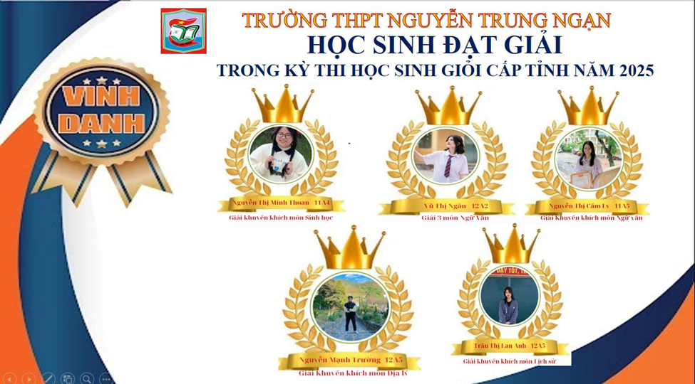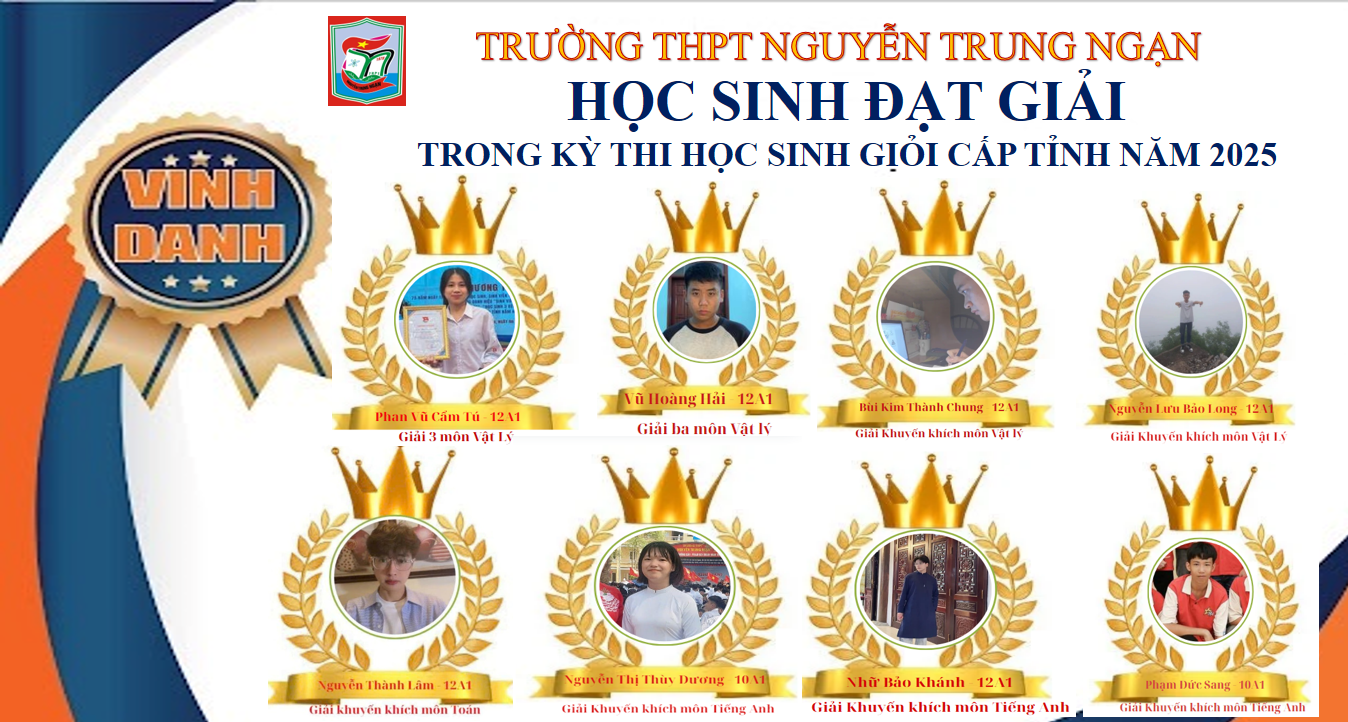 Chúc mừng thầy cô và các em học sinh trường THPT Nguyễn Trung Ngạn với những thành công đã đạt được trong kỳ thi HSG cấp tỉnh năm học 2024 – 2025. Những thành tích này sẽ là nền tảng vững chắc để trường THPT Nguyễn Trung Ngạn tiếp tục gặt hái được nhiều thành công hơn nữa trong những năm học tiếp theo, đóng góp vào sự nghiệp giáo dục của tỉnh Hưng Yên.